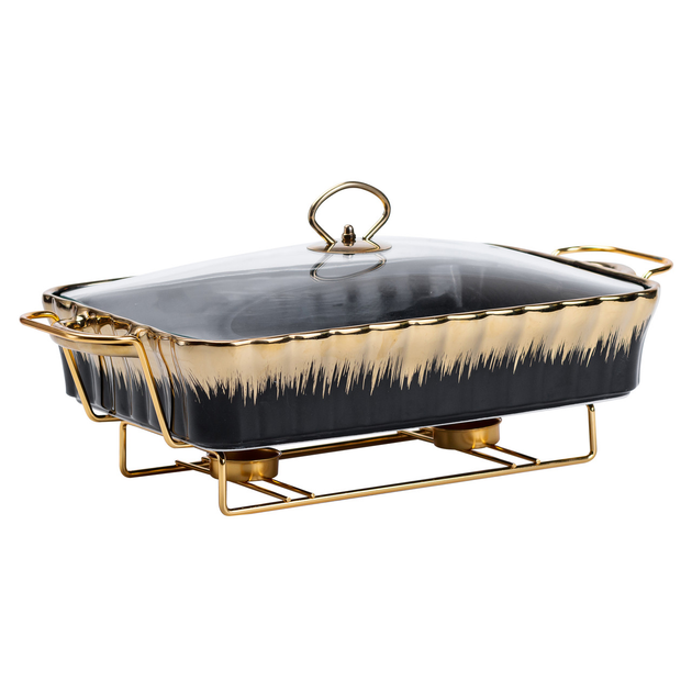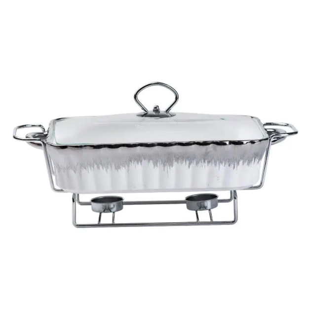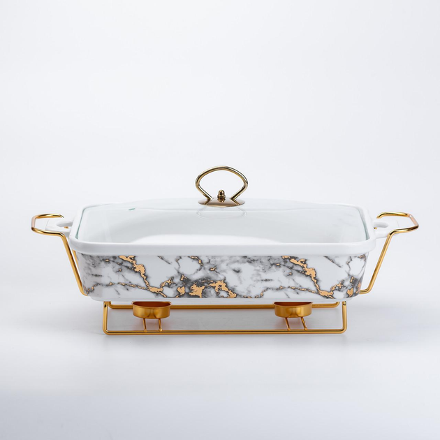 Марміт керамічний прямокутний з підігрівом 1.5 л настільний на металевій підставці 40х23х11 см