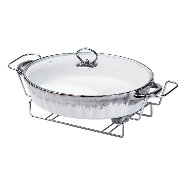 Керамічна овальна мармітниця об'ємом 2 л літра, на металевій підставці з підігрівом