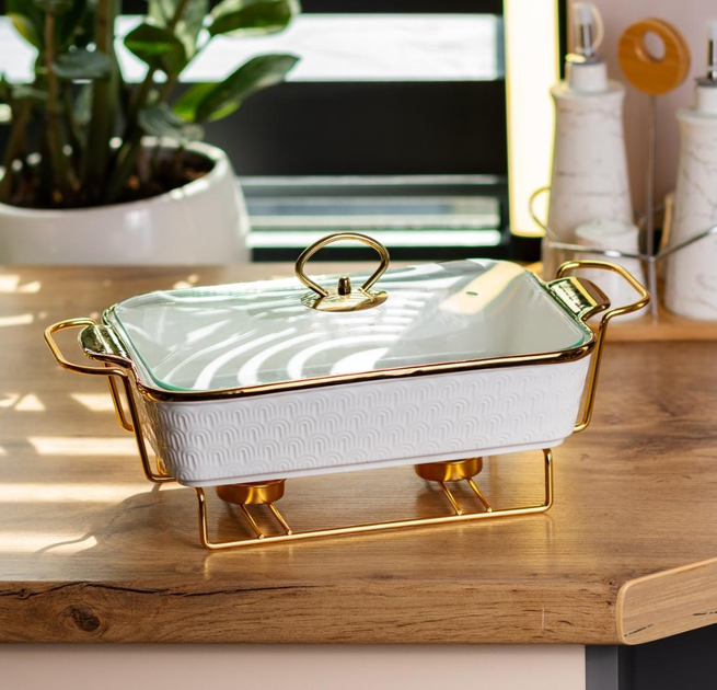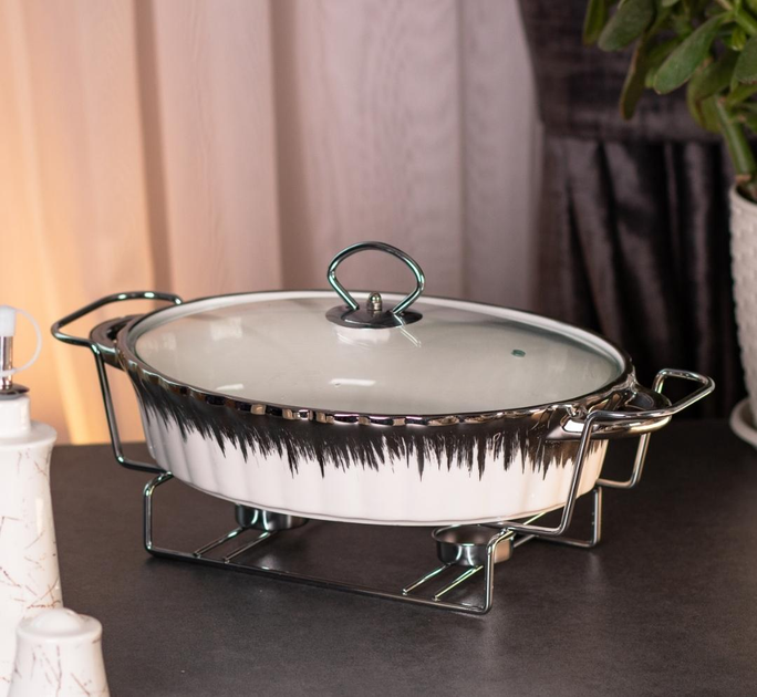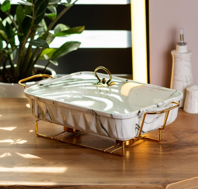 Мармітниця керамічна 1.5 л прямокутна на підставці з орнаментом, білий(SA1107-M)(WB)