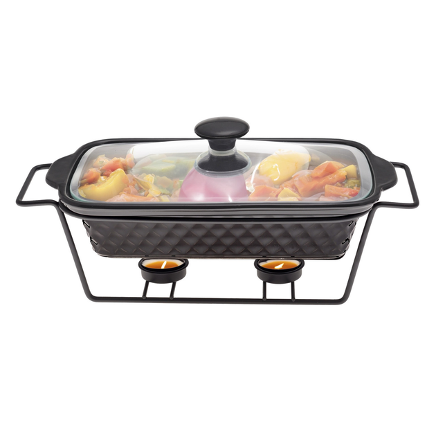 Марміт керамічний 3л настільний Kamille прямокутний 41*24*7см зі скляною кришкою на металевій підставці Чорний