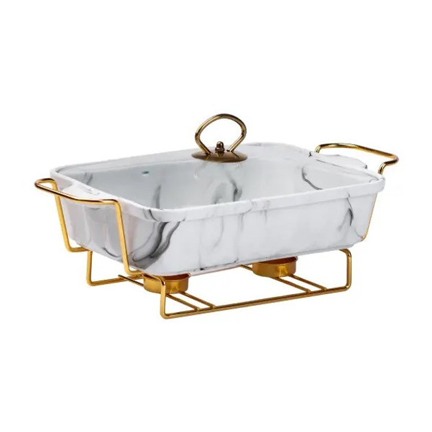 Мармітниця керамічна прямокутна 1 л, мармур із золотом(HP1028)(WB)