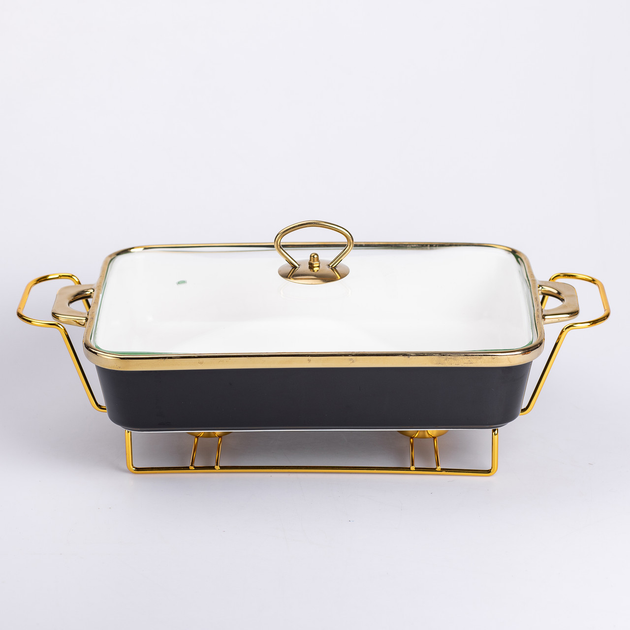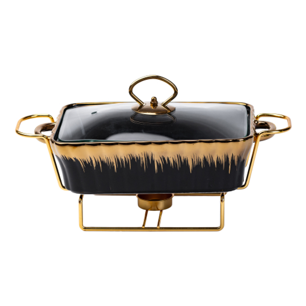 Мармітниця керамічна 2 л прямокутна на металевій підставці Чорний Yiwu HP1048