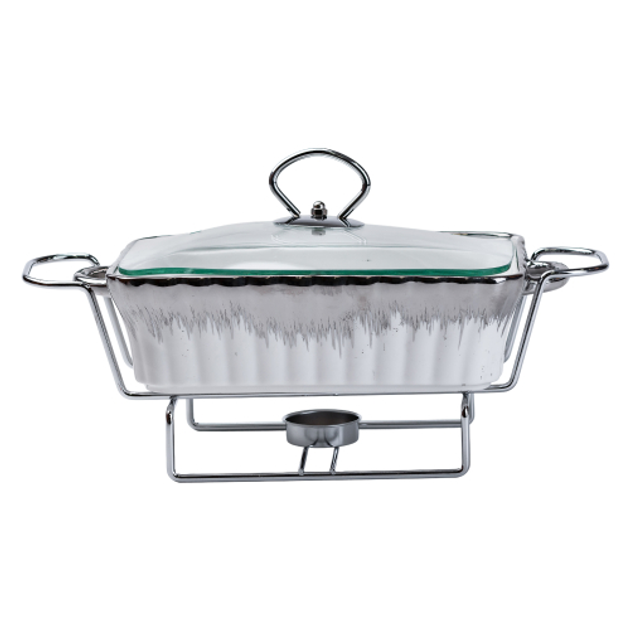 Мармітниця керамічна прямокутна 1 л зі скляною кришкою, хром(HP1019)(WB)