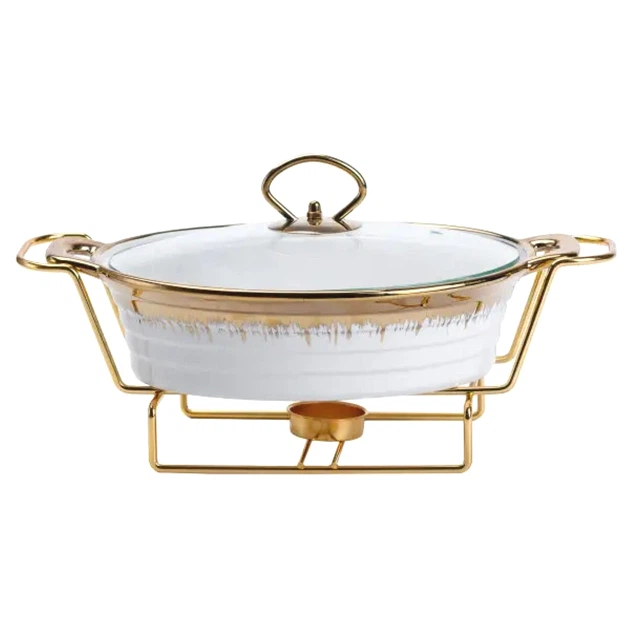 Мармітниця керамічна 1 л прямокутна з підігрівом на металевій підставці Білий Yiwu HP1013