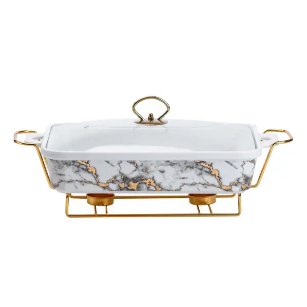 Настільна мармітниця 2 літра марміт прямокутний керамічний 40х23х11 см для других страв Мармур HP1033