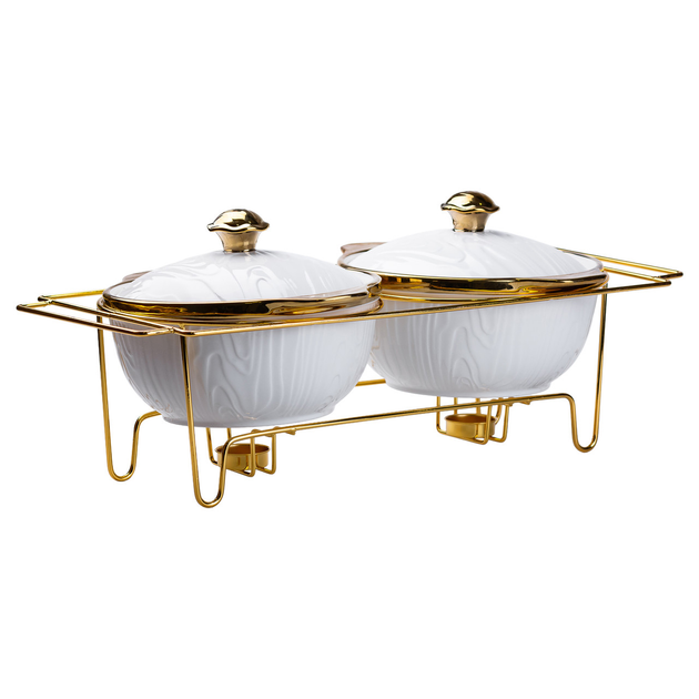 Мармітниця керамічна на 2 секції по 1,5 л на металевій підставці 512318 см Білий