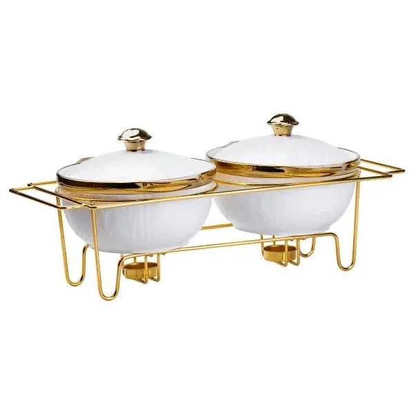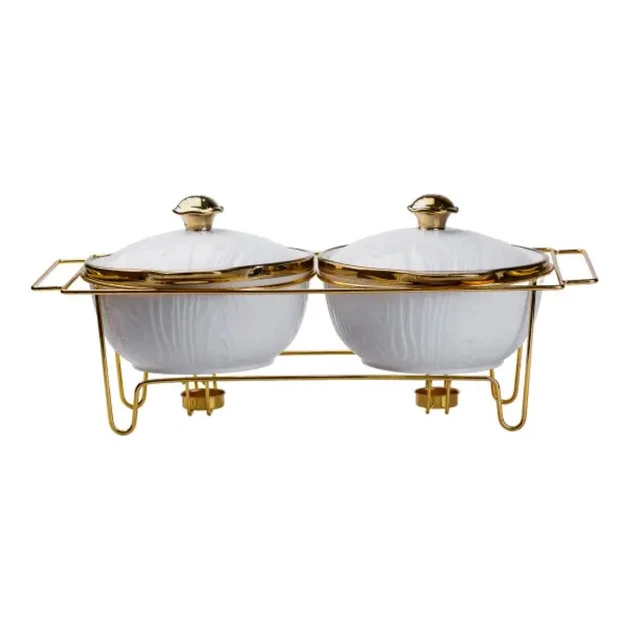 Марміт порцеляновий на 2 секції 1,5 л з металевою підставкою для сервірування гарячих страв столовий контейнер (523390)