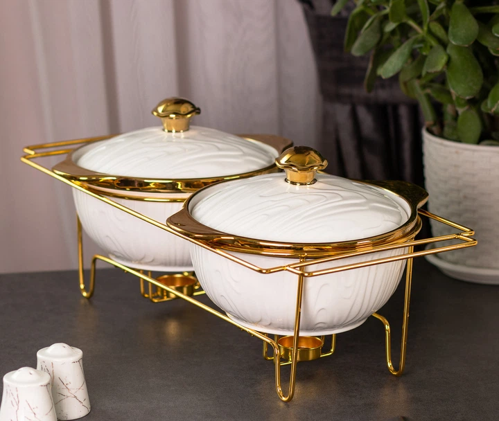 Керамічний марміт на 2 секції по 1 л золото