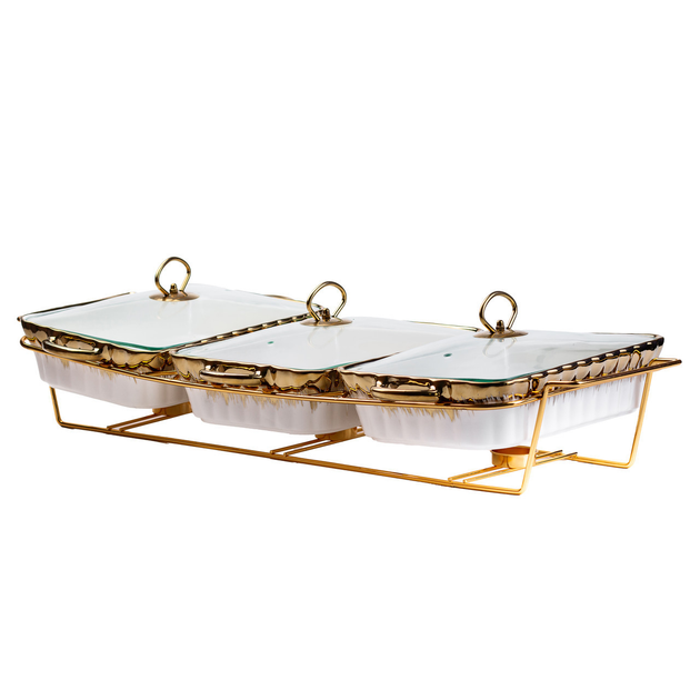 Керамічний марміт на 3 секції по 1.5 літри з підігрівом золотий