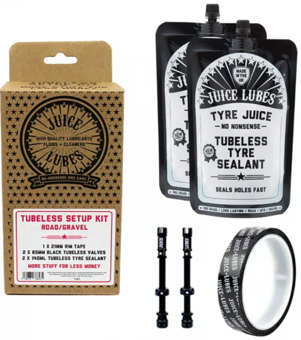 Набір (комплект) безкамерки JUICE LUBES (Road-Gravel, 21mm Tape, 65mm Valves, 280ml Sealant) 5060731388575