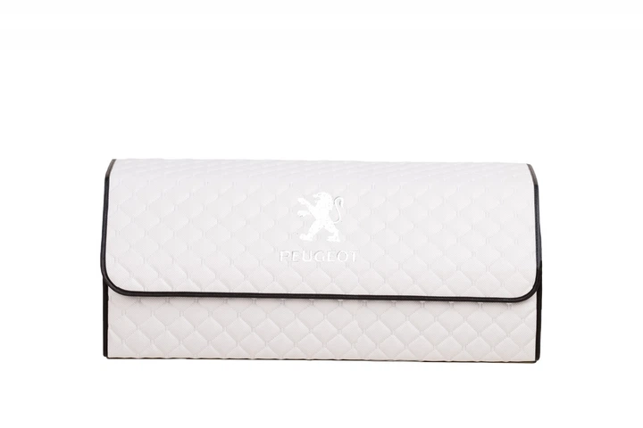 Органайзер у багажник автомобіля PEUGEOT з перфорованого екошкіри та вишитим логотипом 80*30*30 см білий