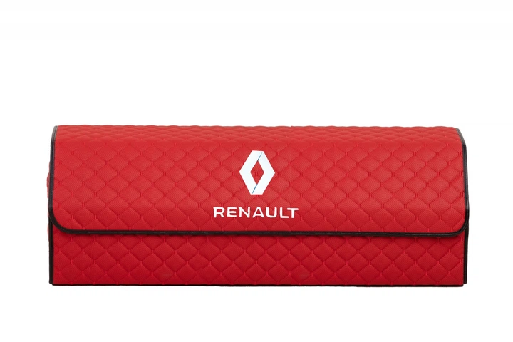 Органайзер у багажник автомобіля RENAULT з перфорованого екошкіри та вишитим логотипом 100*30*30 см Червоний