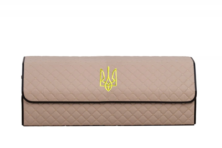 Органайзер у багажник автомобіля Герб з перфорованого екошкіри та вишитим логотипом 100*30*30 см бежевий