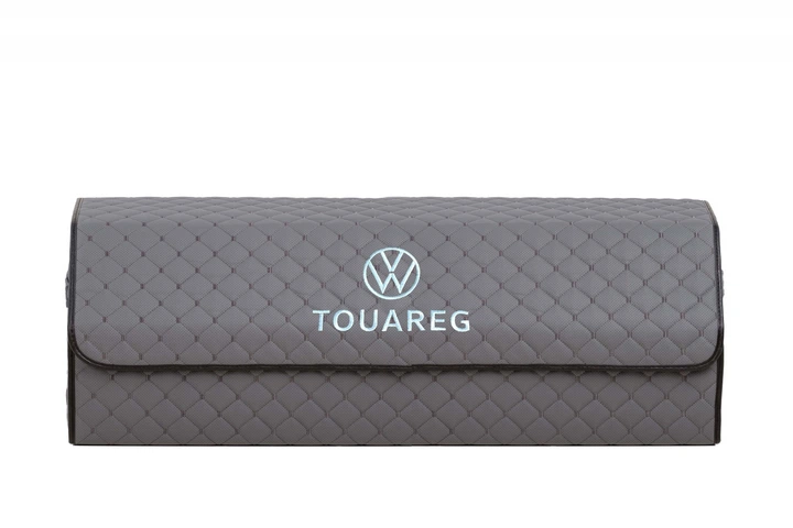 Органайзер у багажник автомобіля Volkswagen Touareg з перфорованого екошкіри та вишитим логотипом 100*30*30 см Темно-сірий