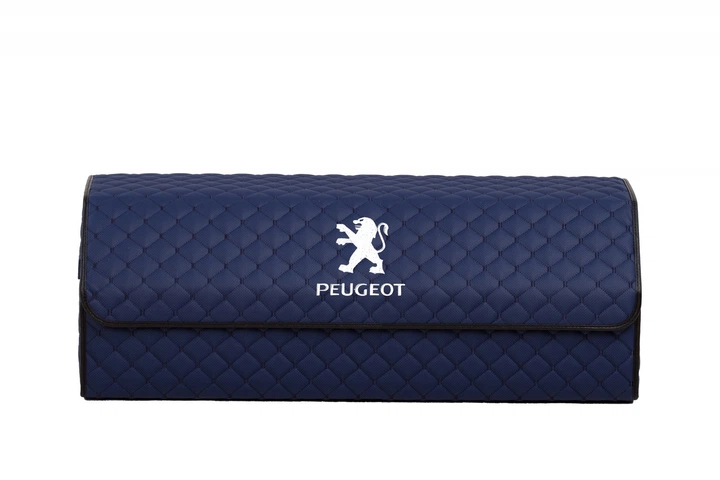 Органайзер у багажник автомобіля PEUGEOT з перфорованого екошкіри та вишитим логотипом 100*30*30 см Синій