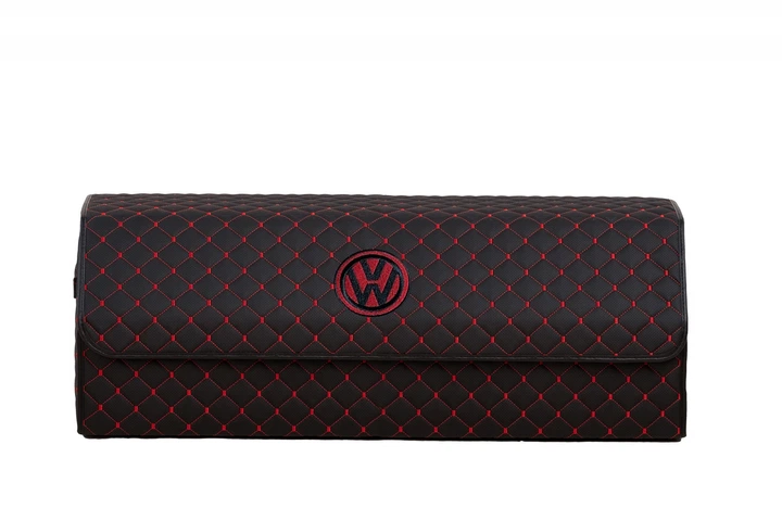 Органайзер у багажник автомобіля Volkswagen з вишитим логотипом перфорована екошкіра 100*30*30 см Чорний з червоним рядком