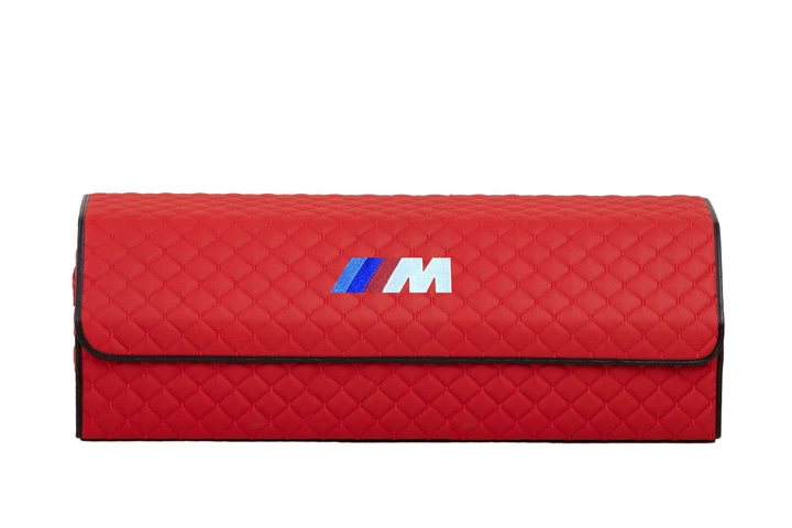Органайзер у багажник автомобіля BMW M з перфорованого екошкіри та вишитим логотипом 100*30*30 см Червоний