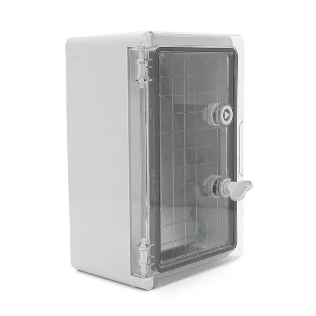 Бокс захисний ABS пластик 300x200x130мм з прозорими дверцятами та монтажною панеллю IP65