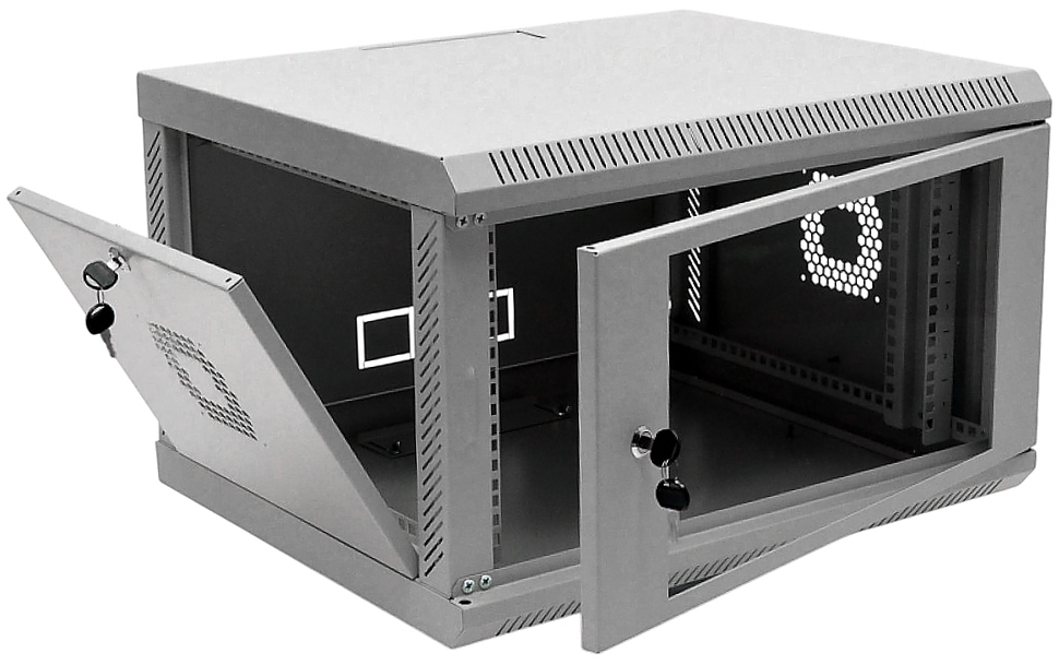 Серверна шафа навісна, розбірна. У комплекті 4 река з регульованою глибиною установки. Введення кабелю зверху, знизу, ззаду. Є можливість встановити до 2 120мм вентиляторів 25мм або 38мм товщини. Кріплення на стіну за допомогою анкерів або на монтажну планку. Збірка шаф максимально спрощена завдяки заздалегідь запресованим кріпильним елементам. Для складання досить викрутки.