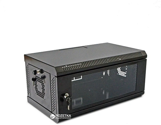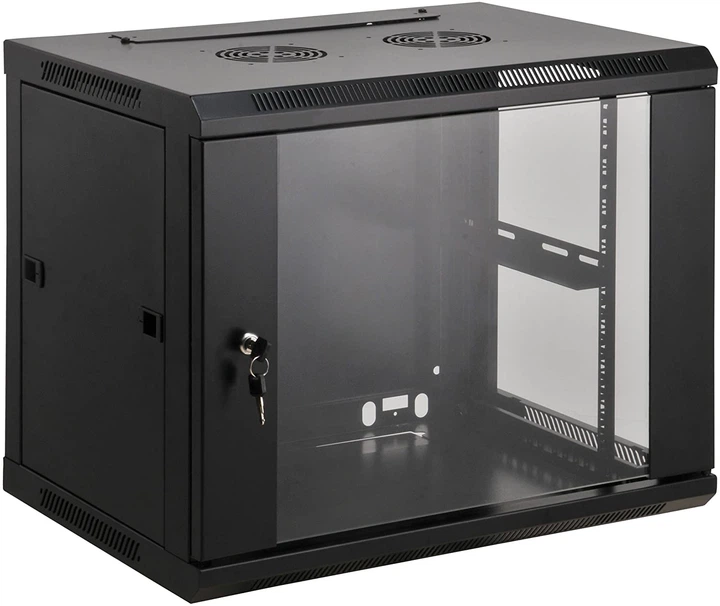 Монтажна стінна шафа для серверів 19 дюймів 6U, сталева зі скляними дверима, чорна, 600x450 мм