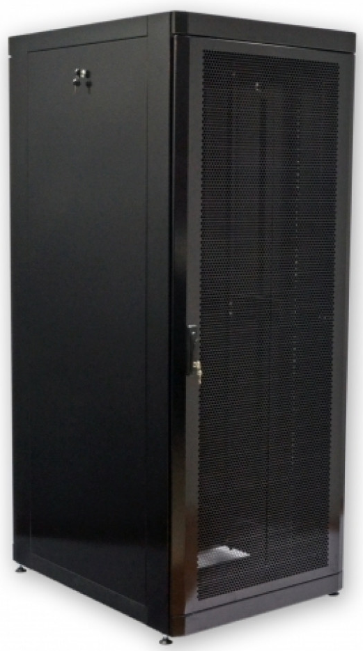 Серверна шафа 19” 42U серії MGSE з суцільнометалевими дверцятами з перфорацією призначена для організації комутаційного вузла в приміщеннях серверної та ЦОД із зовнішнім охолодженням. Завдяки двом парам направляючих із лицьової та задньої сторони та допустимому навантаженню в 500 кг, у шафах є можливість розміщення обладнання на чотири точки кріплення, такого як сервери, блок