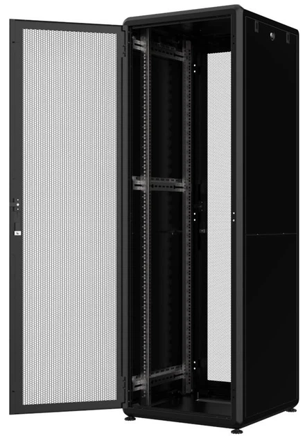 Шафа MIRSAN 19", 42U, GTV, перфорація 63, 600x600 мм, максимально 2000 кг, чорна