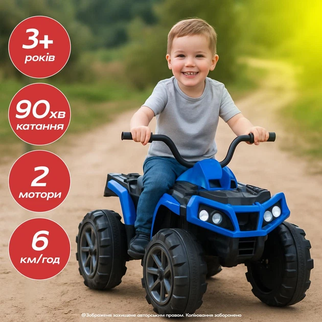 Дитячий квадроцикл 2 мотора по 25Вт MP3-плеєр VOLSO акумулятор 12V 7Ah від 3-8 років Синій/Чорний