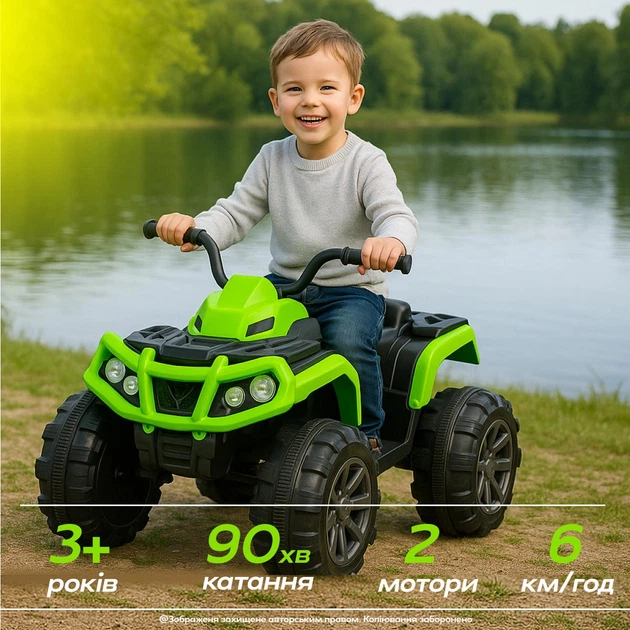 Дитячий квадроцикл 2 мотора по 25Вт MP3-плеєр VOLSO акумулятор 12V 7Ah від 3-8 років Зелений/Чорний