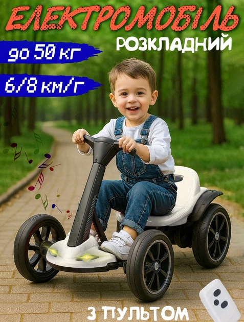 Дитячий електромобіль розкладний карт AToys 497854 см швидкість 6-8 км/год Білий