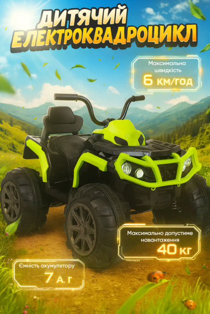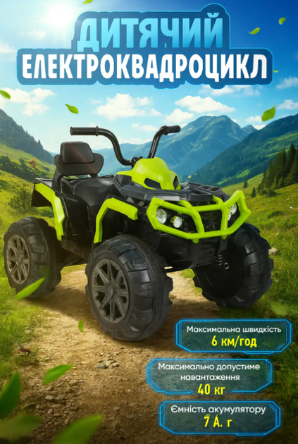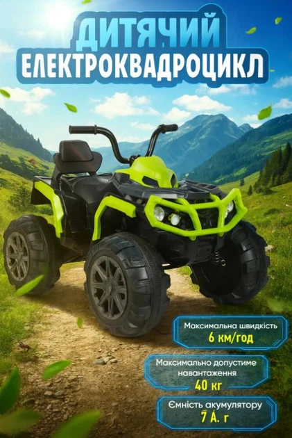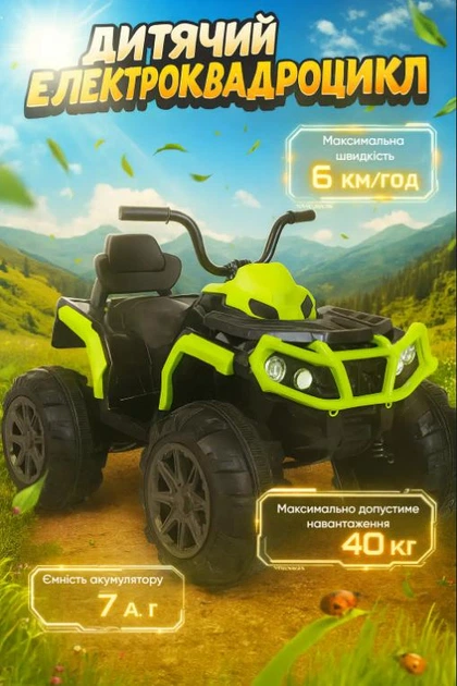 Електроквадроцикл дитячий VOLSO VS1288G2 подвійний мотор 225W зелений 12V 7Ah MP3 3+ років / 40 кг