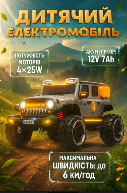 Електромобіль дитячий VOLSO VS906R4 джип на акумуляторі 425W 12V 7Ah EVA Сірий Код: VS906R4
