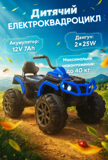 Електроквадроцикл дитячий VOLSO VS1288B2 акумуляторний 12V 7Ah 225W MP3 Синій Код: VS1288B2
