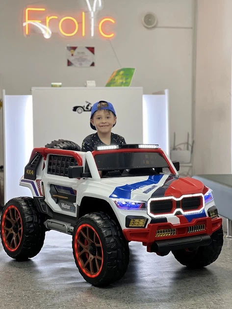 Дитячий двомісний повнопривідний електромобіль Bambi Jeep 4x4 Safari з прожектором, червоний