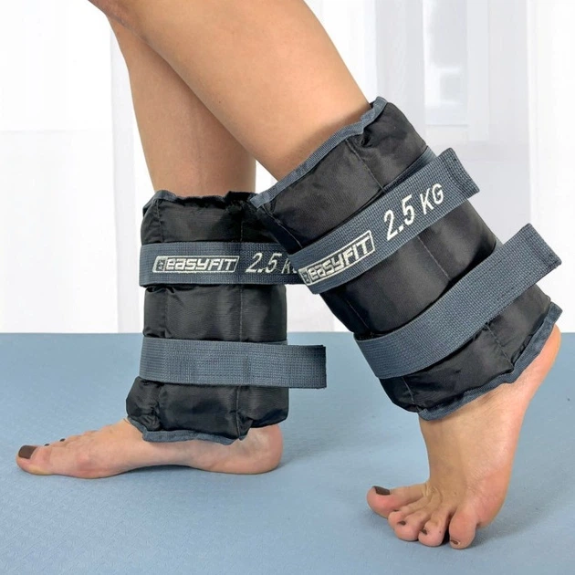 Обважнювачі для ніг та рук EasyFit EF-WHT-2,5, 22,5 кг, сірі (2 шт.), кварцовий пісок - для фітнесу, бігу та аеробіки