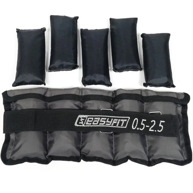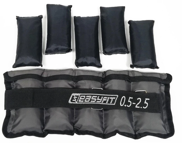 Обважнювачі для ніг та рук EasyFit EF-AWTМ-525, набірні 0,52,5 кг, сірі (2 шт.), сталева гранула - для фітнесу і бігу