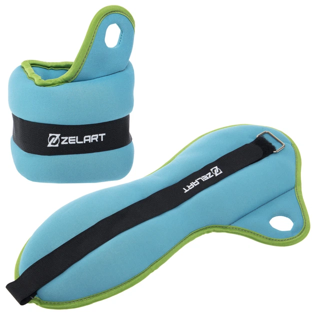 Обважнювачі-манжети для рук із фіксацією на великому пальці Zelart FI-1965-4 2x2кг Синій-салатовий