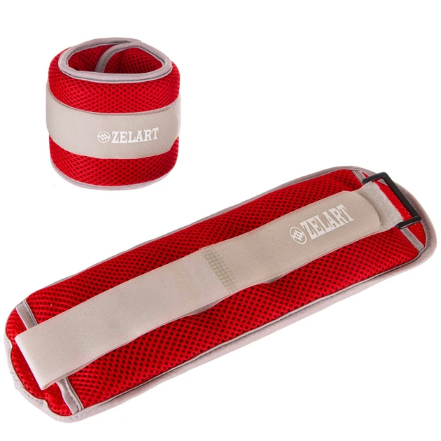 Обтяжувачі-манжети 2кг 2шт по 1кг водонепроникні для рук та ніг Поліестер Гумовий гель Липучка Zelart червоно-сірі FI-7210-2