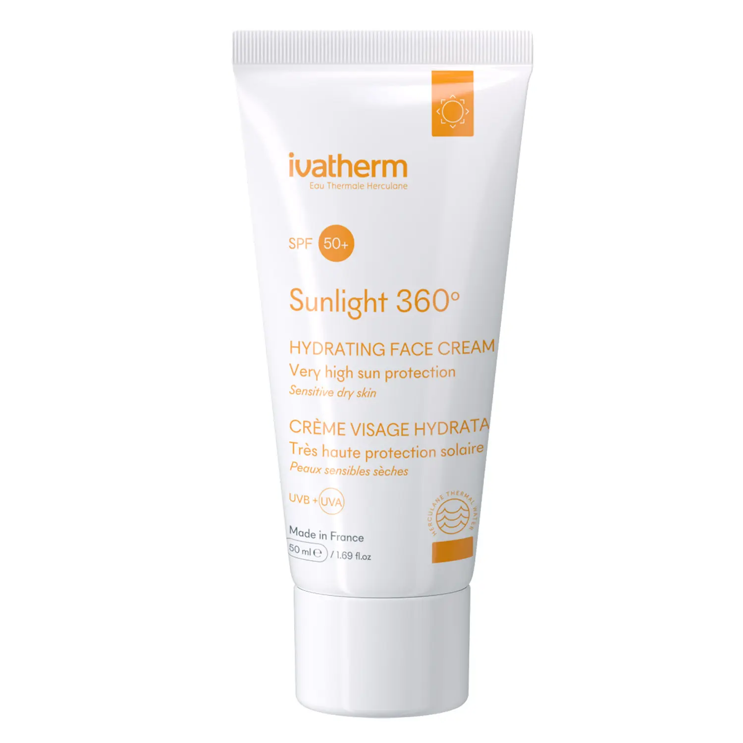 Сонцезахисний крем Ivatherm Sunlight, зволожувальний, для сухої чутливої шкіри обличчя, SPF 50+, 50 мл