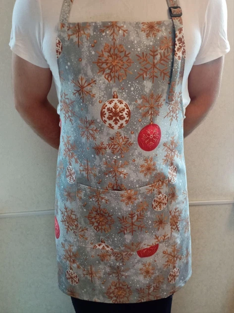 Фартух кухонний водонепроникний новорічний подарунок на різдво чи новий рік з регульованою лямкою сірий