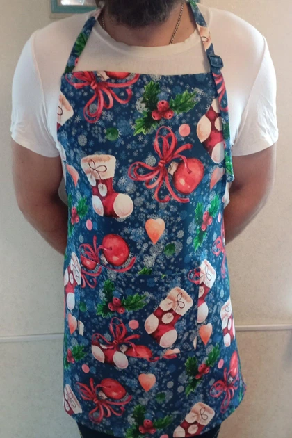 Фартух кухонний водонепроникний новорічний подарунок на різдво чи новий рік з регульованою лямкою синій