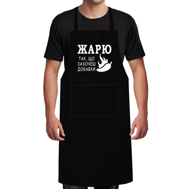Кухонний фартух з друком "Жарю так, що захочеш добавки" (колір чорний) (28848)