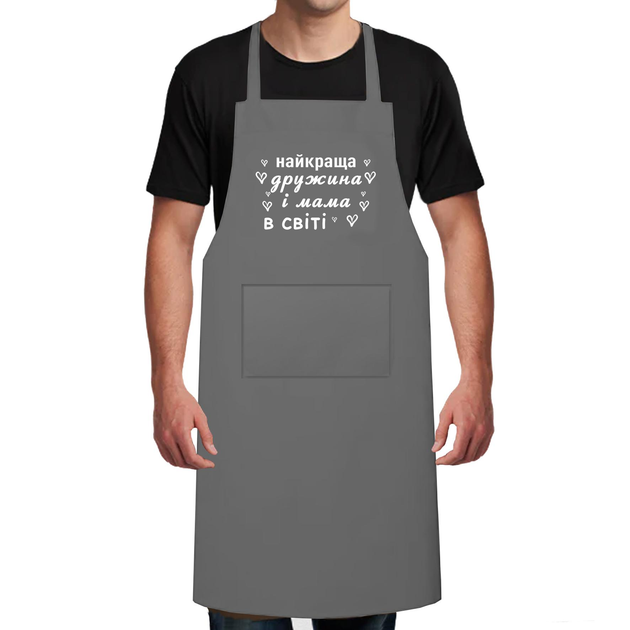 Кухонний фартух з друком "Найкраща дружина і мама в світі" (колір сірий) (28137)