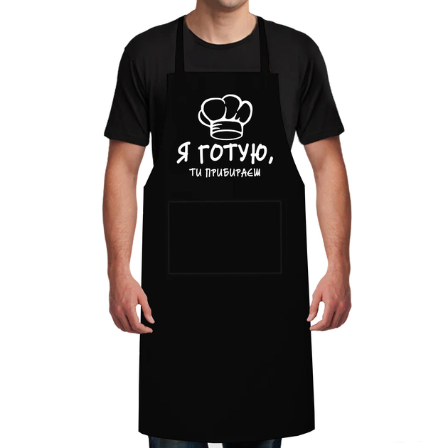 Кухонний фартух з друком "Я готую, ти прибираєш" (колір чорний) (28824)
