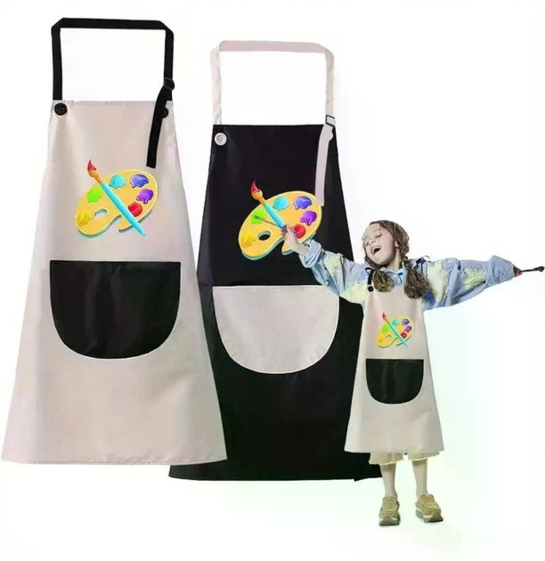 Регульований фартух дитячий для малювання з карманами набір 2 шт Чорний та Білий