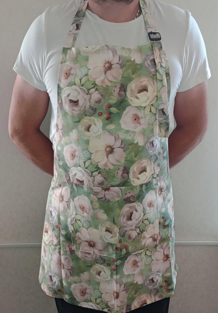 Фартух кухонний водонепроникний з регульованою лямкою на великий розмір Анемони у подарунковій упаковці