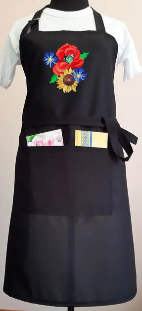 Фартух кухонний для повара продавця офіціанта з вишивкою чорний Ф5