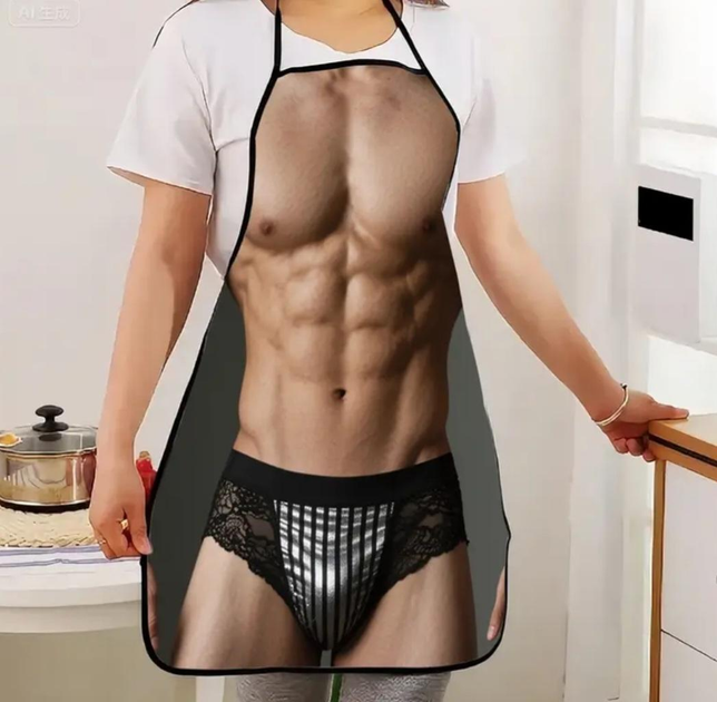Фартух чоловічий прикольний Голий торс у трусах 74 на 54 см різнобарвний