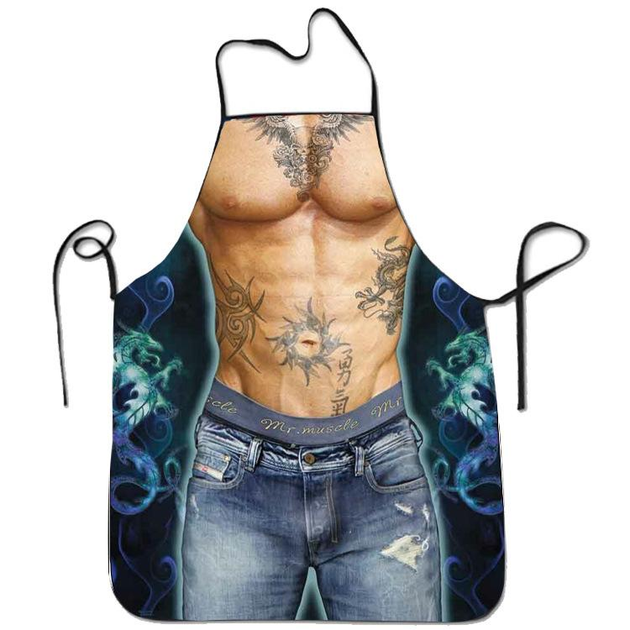 Прикольний фартух для чоловіків з тату 80 на 60 см різнобарвний