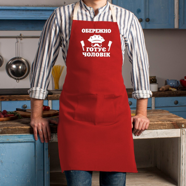 Фартух "Обережно Готує чоловік", Червоний, українська 4603103