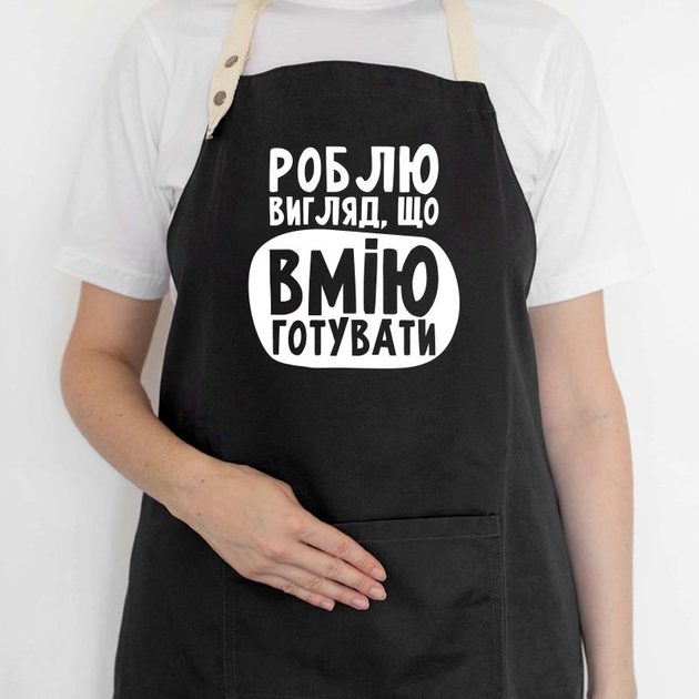 Фартух із написом «Роблю вигляд, що вмію готувати» (чорний)